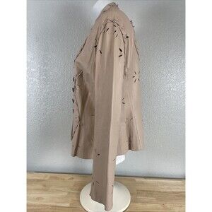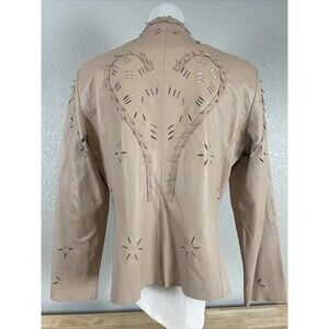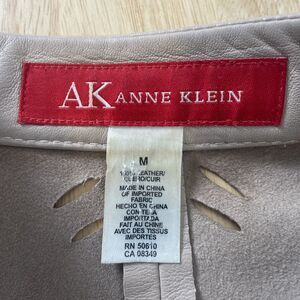 AK ANNE KLEIN Tan Cutaway Leather Jacket Blazer Button Stand Up Collar Sz M