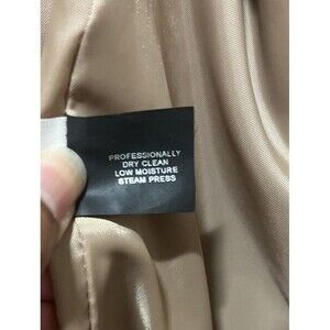 The coat is dry clean only and has a polyester lining for added comfort. The beige color and accents give it a timeless look that will complement any outfit. This coat is perfect for women who want to stay stylish and warm during the colder months.