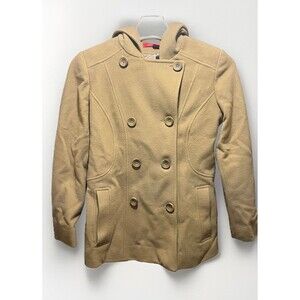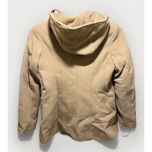 AK Anne Klein Hooded Pea coat Womens Size Petite Small Caramel Wool Blend