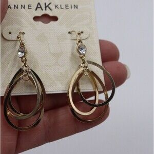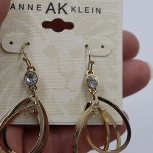 AK Anne Klein Rhinestone & Gold Dangle Earrings
