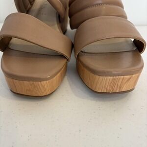 AK Anne Klein Sandals Womens Size 11 Tan Wedge Platform Slide Mules Square Toe