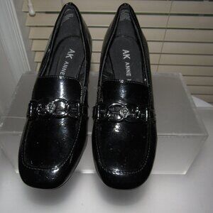 AK Anne Klein Treasure Black Patent Loafer Block Heels Size 6.5M | Minimalist