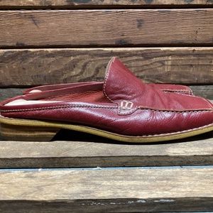AK Anne Klein Women Red Leather Flat Slip On Mule Size 6.5