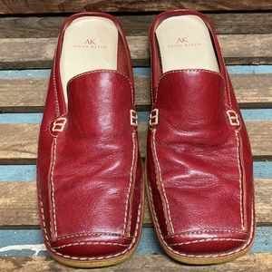 AK Anne Klein Women Red Leather Flat Slip On Mule