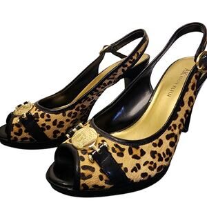 Very good, used condition, size 7.5. AK iFlex, cheetah print fur slingback peep toe heels. Please see pics for details and measurements. Normal wear. Smoke-free, ask any questions. Shop my closet for more great items: BUNDLE, BUNDLE, BUNDLE for discounts!!!