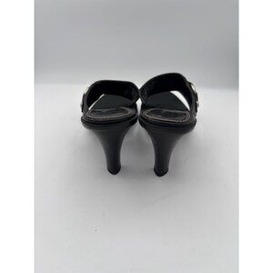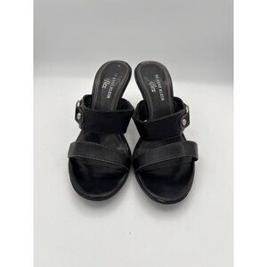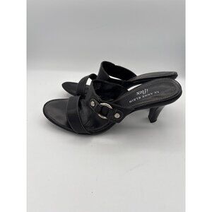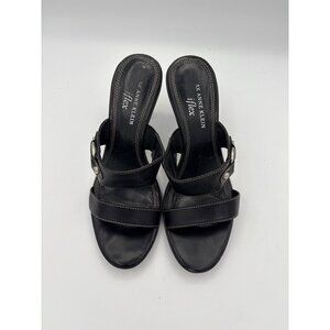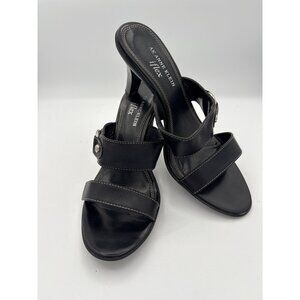 AK Anne Klein Womens Black Leather Heeled Sandals Size 7