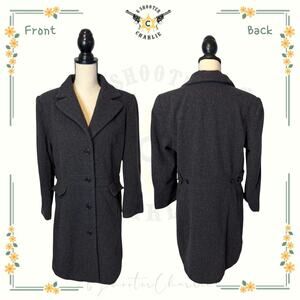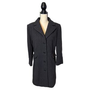 AK Anne Klein Wool Pea Coat Womens Medium Gray Long Blazer Jacket Office Casual