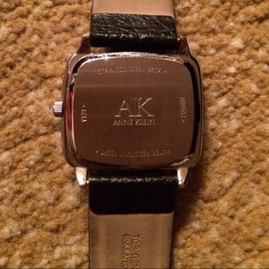 AK Anne Klein stainless Steel with black genuine leather strap. Very good condition.