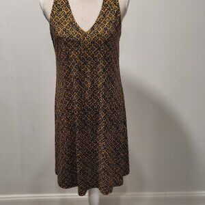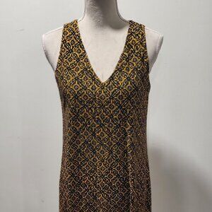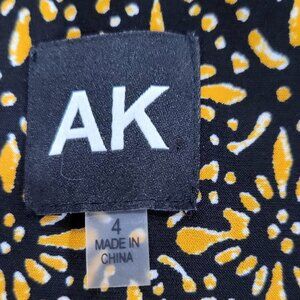 AK Black Dress with Mustard Gold Design, Size 4, Perfect Fall Colors!