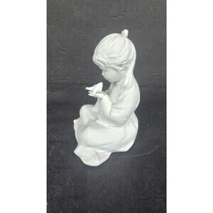 AK Kaiser Germany Bisque Porcelain Seated Girl with Dove Figurine White 806