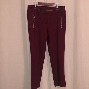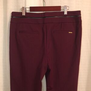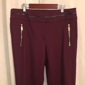 AK 10P Burgundy Black Leather Gold Tone Zippers Knit Professional Pants