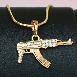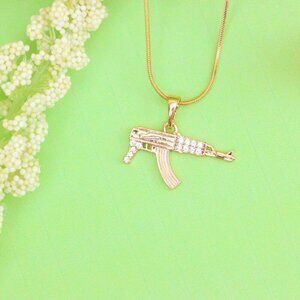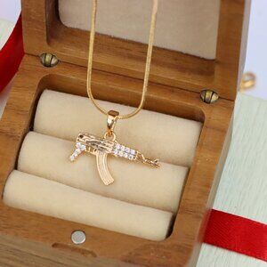 Crafted with attention to detail, this rose gold pendant features a bold and stylish AK-47 design, making it a standout accessory. Made from high-quality brass and finished with a durable gold plating, it combines urban edge with elegance.