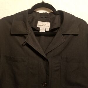 AKA Eddie Bauer L Top Linen Blend Button-Up Utility Pockets Vtg Lagenlook Gothic