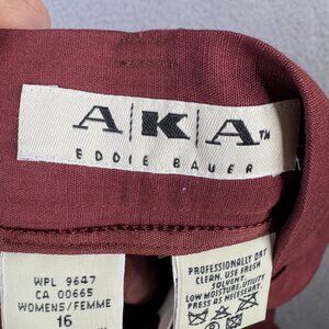 AKA Eddie Bauer Pants Womens Size 16 Vintage Red Brown Pleated Ankle Linen 90s