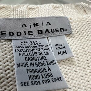 AKA Eddie Bauer Rare Vintage Mens Medium Cream V Neck π― Cotton Sweater Vest R5