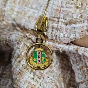 ALPHA KAPPA ALPHA Ivy Storehouse Tweed Sleeveless Shift Dress Pockets Sparkly High Neck Size Small, Side Zip and Back Zip, , Lined, 100% Polyester, Dry Clean Only. Excellent condition! It is really hard to get a photo of the sparkly gold threads throughout the dress.