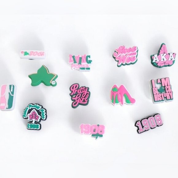 AKA Sorority Croc Charms, Alpha Kappa Alpha Shoe Decorations, AKA Greek Letter Croc Charms, AKA Sorority Accessories, Sorority Pride, Pink and Green Croc Charms, Divine Nine Shoe Decor, AKA Paraphernalia Croc Bling, Greek Sorority, AKA Merchandise for Crocs, AKA Paraphernalia Charms, AKA Croc Shoe Accessories, Alpha Kappa Alpha Sorority Swag, AKA Gift Ideas for Croc Lovers, AKA Chapter Shoe Bling