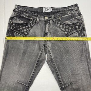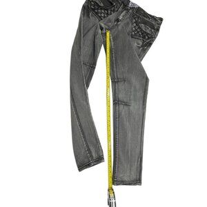 AKADEMIKS Black Wash Distressed Skinny Jeans Size 7 Low-Rise Embroidered Hip-Hop