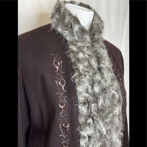 AK Anne Klein vintage fur trimmed Boho wool coat L