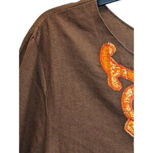 AKC Women Plus size 1X Embellished Southwestern Aztec Side Slit Linen Blend Top