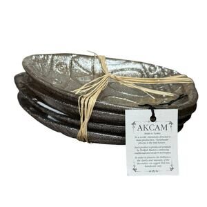 AKCAM Turkish 6" Plates Metallic Sparkle Glitter Glass Tapa Set of 4 Easter Egg