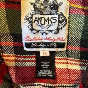 AKDMKS Akademiks Flannel Shirt Mens XL Red Green Plaid Long Sleeve