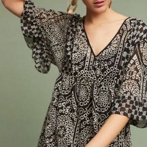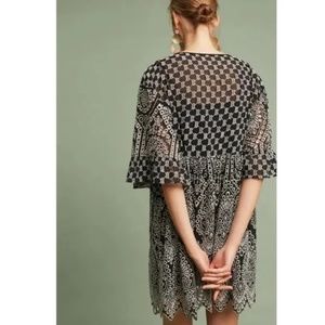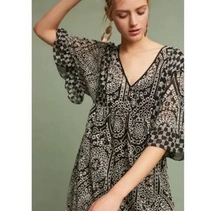 AKEMI + KIN ANTHRPOLOGIE Black White Floral Eyelet Embroidered Mini Dress Size 6