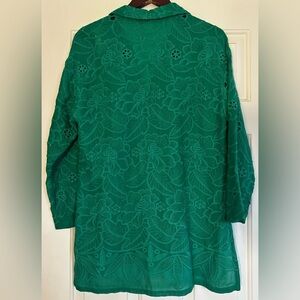 AKEMI + KIN Anthropologie Abacos Green Eyelet Tunic Blouse XS PRISTINE Patty’s