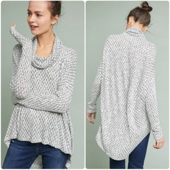 Gray and black geometric print high-low cowl neck sweater from AKEMI & KIN for ANTHROPOLOGIE, size XS