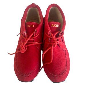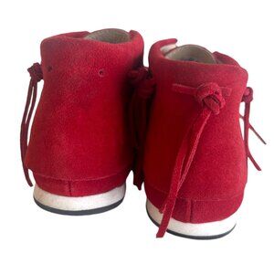 AKID Stone Red Nubuck Leather Moccasin Booties Ankle Boots Fringe A Kid Sz 1 1Y
