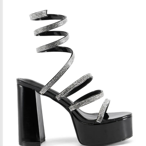 AKIRA AZALEA WANG PANDRA BLACK PLATFORM WITH COIL RHINESTONE DETAIL Size 6.5