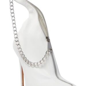 Chained to the rhythm in The AZALEA WANG Sagitta White Stiletto Pump. These cuties are crafted from a luxe, creamy faux leather and features a pointed toe silhouette, a slim towering stiletto heel, and a metallic double-front zipper closure with a chunky, curb chain hardware that artfully drapes across the side of the shoe. Complete with a tonal cushioned insole, a rubber outsole, and a step-in fit.