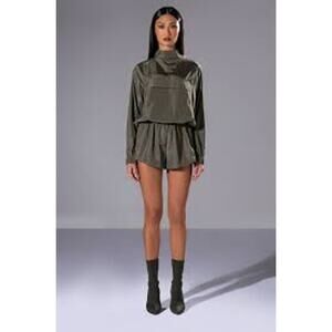 Slay the day in The AKIRA Label All Day Errands Lightweight Romper In yellow. This slick piece is made from a smooth, lightweight fabrication and features a mock neckline, long sleeves with elastic cuffs, a mock front flap pocket, an elastic waist, attached shorts with mesh lining, and tonal back zipper, shoulder, and Velcro neck closures.
