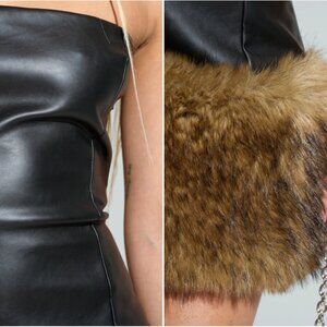 AKIRA BARON PU MINI DRESS WITH FUR TRIM Size MM