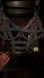 Stylish corset top with strappy design. Black base with white dot pattern. Adjustable straps for perfect fit.