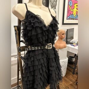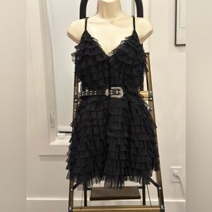 AKIRA CRAZY FOR YOU BELTED TIERED TULLE MINI DRESS IN BLK NWT LARGE
