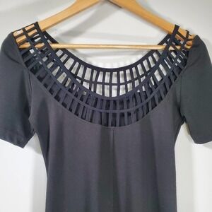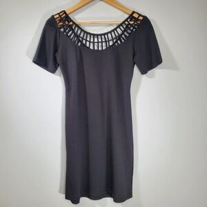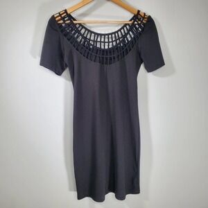 AKIRA Cage Top Short Sleeve Mini Sheath Dress Blaxk Size Medium