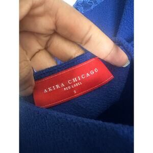 AKIRA Chicago Women's Lace Sleeve Bodycon Mini Dress S Open Back Royal Blue,