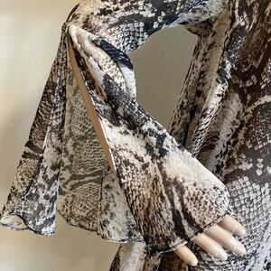 AKIRA Chicago long bell sleeve animal print semi-sheer blouse size M