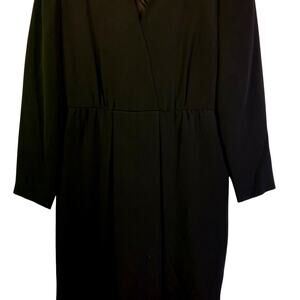 AKIRA Dress 8 Vintage Union Made 100% Silk Scallop V Neckline Midi Hidden Zipper