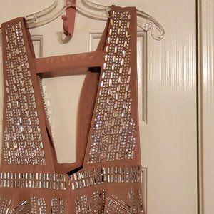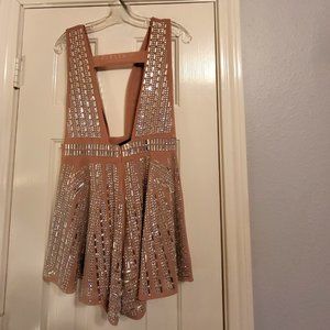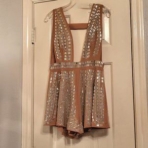 AKIRA I Run It Nude Rhinestone Mesh Romper