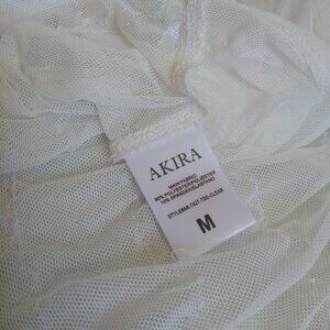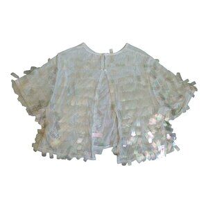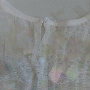 AKIRA Impress Me Iridescent Short Sleeve White Mesh Sequined Top Women's Medium