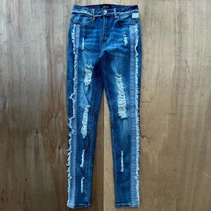 AKIRA MAYA FRAY MID RISE SKINNY WOMEN’S JEANS sz 7 W27 Dark Wash STRETCHY NWT