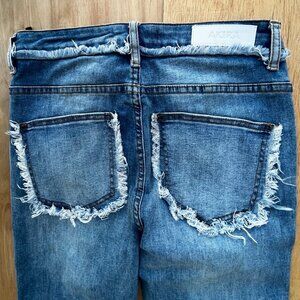 New AKIRA MAYA FRAY MID RISE SKINNY WOMEN’S JEANS sz 7 W27 Dark Wash STRETCHY Denim