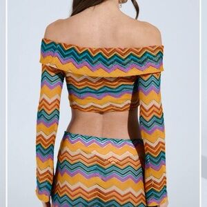 ✨AKIRA Multicolor Zigzag Off-Shoulder Crop Top✨