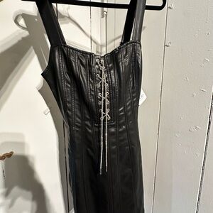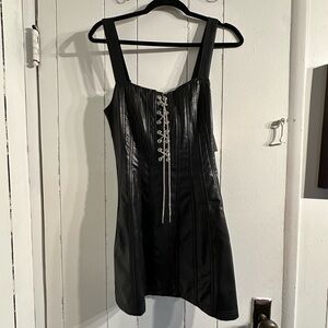 AKIRA NWT pleather Corset-Style mini Dress with rhinestone ties