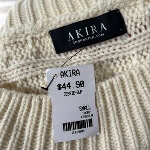 AKIRA label Jessie Off Shoulder Fringe Sweater is made of a soft acrylic. Features a boat neck wide ribbed collar, a cropped length and soft knit fringe up the length of each sleeve.