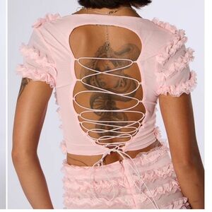AKIRA Pink Ruffle Matching Set