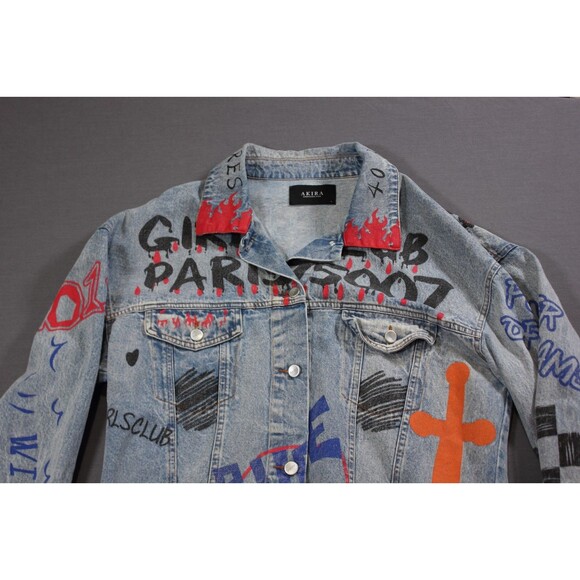 AKIRA Rude Jacket Jean Denim Azalea Wang Paris Painted Women's Girl's Club L