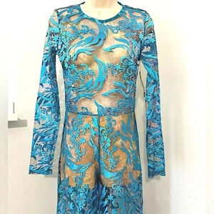 AKIRA Sheer Lace Embroidered Jumpsuit New Party Bodysuit Festival Rave